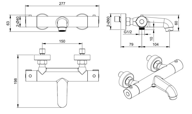 Смеситель для ванны Aquatek Вега AQ1043BGM оружейная сталь Подробнее