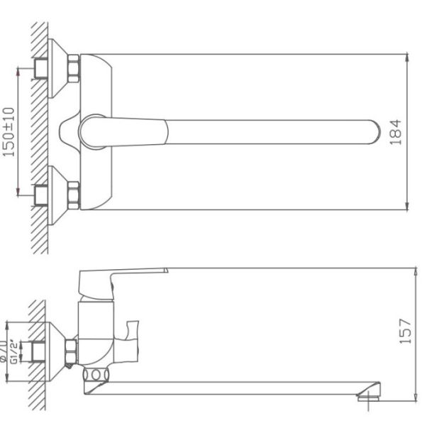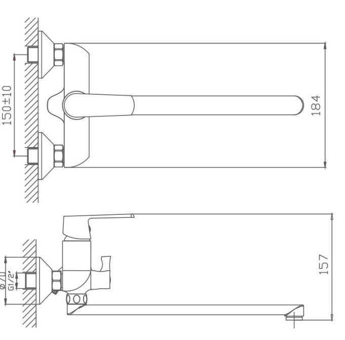 Керамический картридж 35 мм.Диаметр декоративных чашек 70 мм.Душевой гарнитур в комплекте.Межосевое расстояние (расстояние между выходом горячей и холодной трубы) 150 мм.Данное расстояние изменяется за счет входящих в комплект эксцентриков на 10 мм в большую или меньшую стороны.