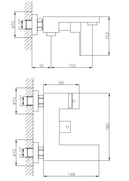 Керамический картридж 35 мм.Диаметр декоративных чашек 70 мм.Душевой гарнитур в комплекте.Межосевое расстояние (расстояние между выходом горячей и холодной трубы) 150 мм.Данное расстояние изменяется за счет входящих в комплект эксцентриков на 10 мм в большую или меньшую стороны.