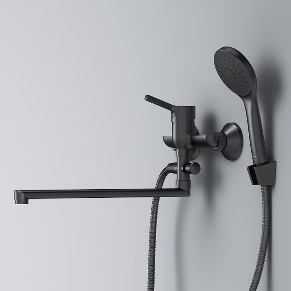 Смеситель для ванны и душа Am.Pm X-Joy F85B90122 универсальный Черный матовыйСтильное универсальное решение для ванной комнаты - качественный смеситель для ванны и душа с длинным поворотным изливом с душевым набором. Универсальный длинный излив позволяет использовать смеситель как для ванны, так и для рядом стоящей раковины. Функциональный держатель для ручного душа на два положения добавит удобства использования. Душевой шланг длиной 150 см позволит наслаждаться душем даже высокому человеку. Максимум функций за разумную плату в одном изделии. Ультрамодный дизайн ручки придает смесителю дополнительную динамику и дарит непревзойденную легкость управления. Вы почувствуете это с первого прикосновения. Точная инженерия для Вашего комфорта: благодаря обширной зоне движения ручки управлять температурой воды стало еще проще.