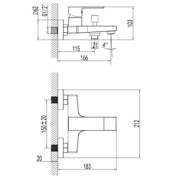 Смеситель для ванны и душа Azario EDDIE AZ-WQY238207C