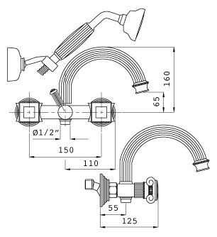 Смеситель для ванны и душа Cezares APHRODITE-V-02-O