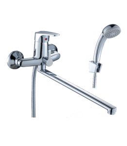 Смеситель Rossinka D40-32 для ванны. Пластиковый аэратор с функцией легкой очистки, керамический картридж 40 мм, переключатель с керамическими пластинами. Аксессуары в комплекте (шланг 1,5 м, настенное крепление, 1-функциональная лейка с функцией легкой очистки) Присоединительная группа (эксцентрики с отражателями) для вертикального крепления.