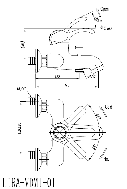 Смеситель для ванны и душа, золото Cezares LIRA-C-VDM1-03