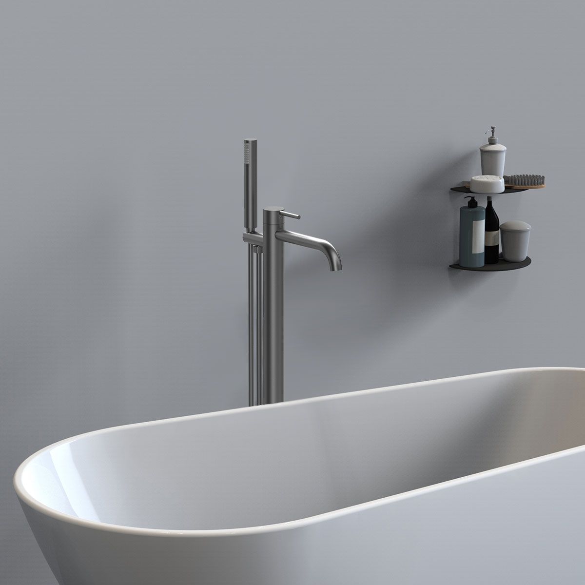 Смеситель для ванны напольный Vincea Desire VTF-1DGM с регулятором давления, однорычажный, вороненая сталь