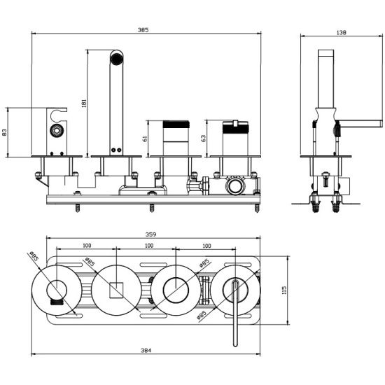 Смеситель для ванны настенный 4 отверстия DQ Bonn графит (DA1704806) купить