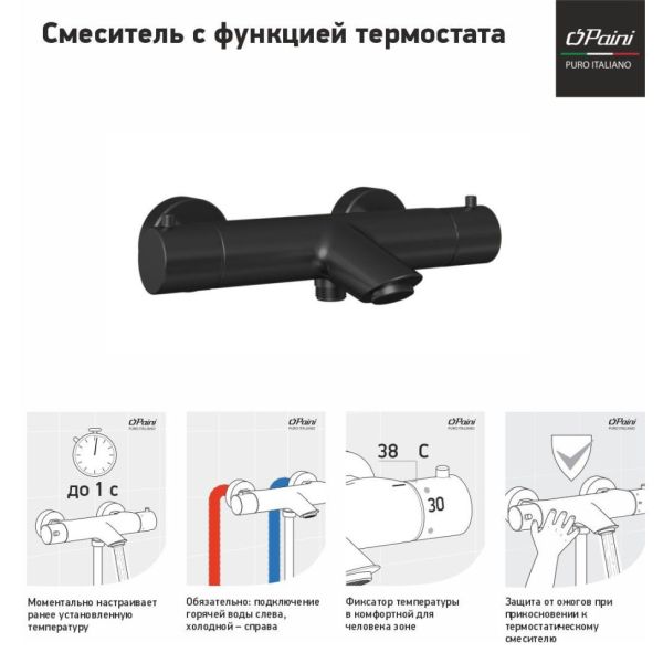 Смеситель для ванны Paini Cox 78PZ111TH с термостатом чёрный матовый купить