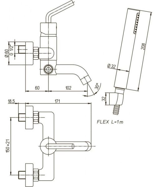 - Керамический картридж Nuovo Galatron для регулировки напора и температуры воды гарантирует долговечное использование.