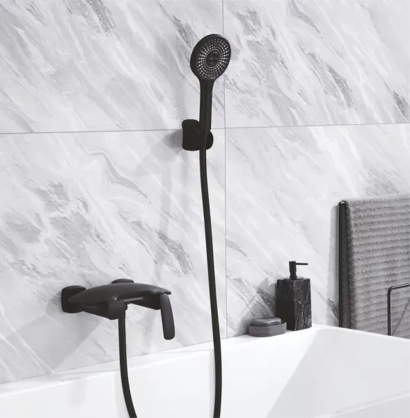 Смеситель для ванны с каскадным изливом Rose R1102H, черный.