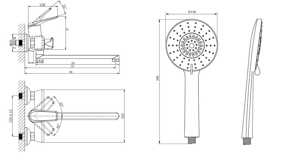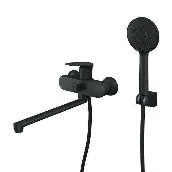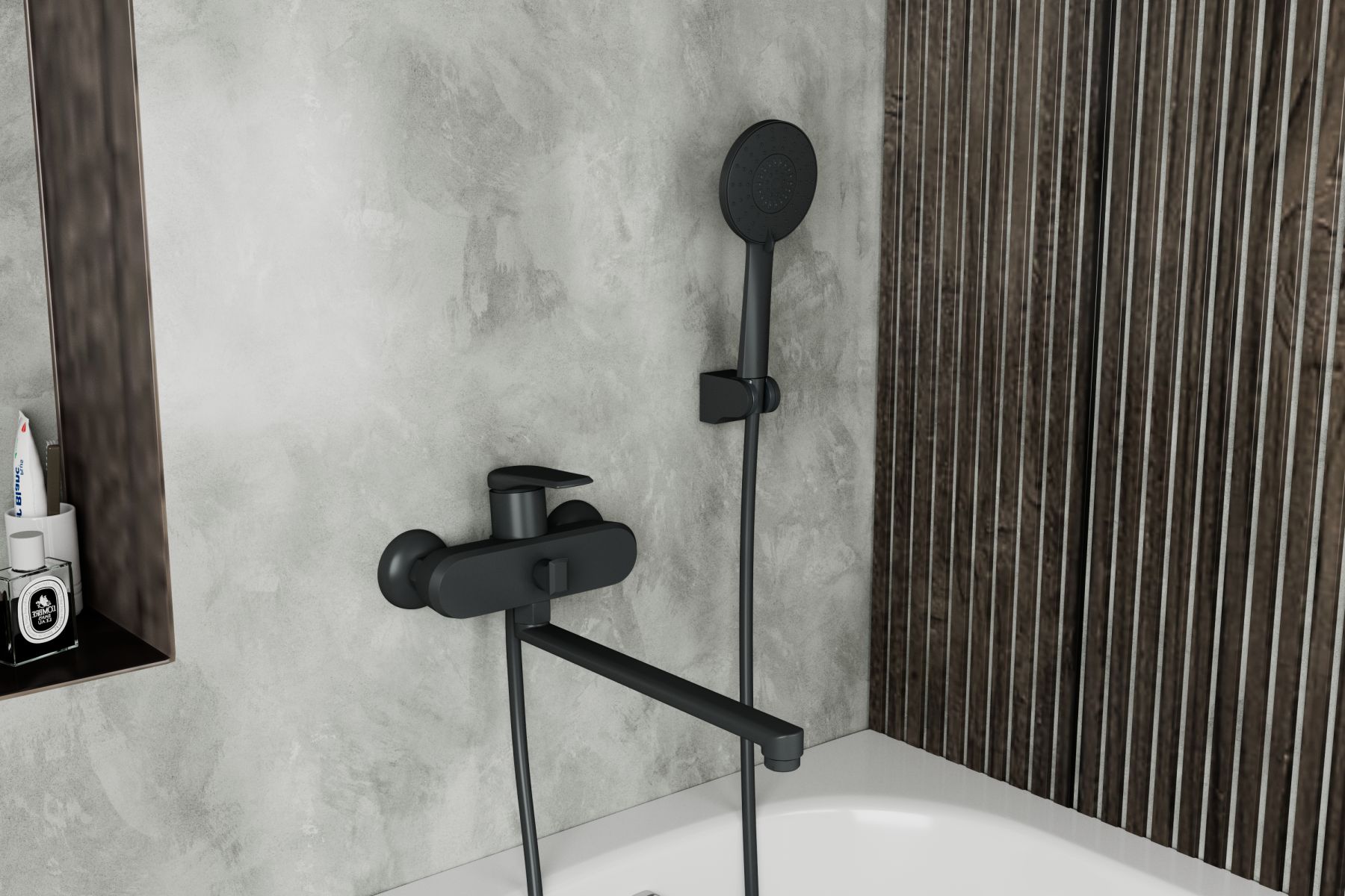 Смеситель для ванны RUSH арт. NE1735-51Black с поворотным изливом из коллекции Nevis изготовлен из высококачественной латуни и имеет рычажное управление. Излив изготовлен из нержавеющей стали В смеситель установлен картридж D-35 с керамическими пластинами, а также дивертор с керамическими пластинами. Пластиковый аэратор с нержавеющим корпусом. Излив поворотный 350 мм. В комплекте универсальная присоединительная группа для установки на вертикальную поверхнгость, однорежимная душевая лейка и душевой шланг длиной 1,5м., держать душевой лейки, нержавеющие эксцентрики фум-лента, индивидуальный пакет, паспорт, гарантийный талон.