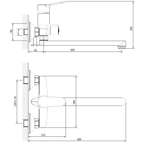 Смеситель для ванны с душем DQ Leipzig длинный излив хром (DA1763301)