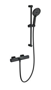 Смеситель для ванны с душевым гарнитуром Wonzon & Woghand Plate WW-C2017-A-MB с термостатом чёрный матовый