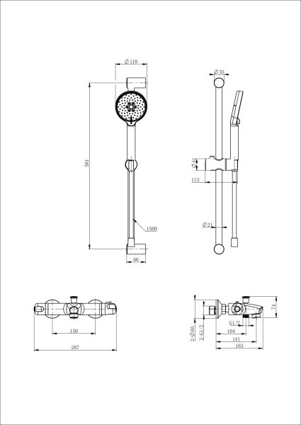Смеситель для ванны с душевым гарнитуром Wonzon & Woghand WW-C2001-A-BG с термостатом брашированное золото