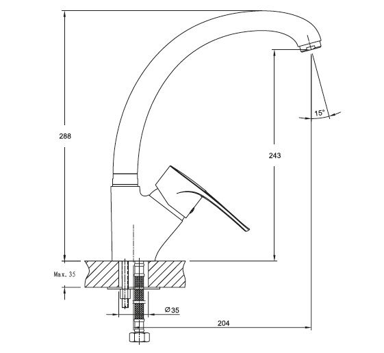 • Высота смесителя:
