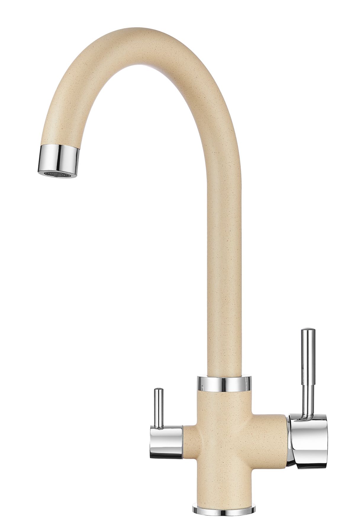 Смеситель для кухонной мойкиЦветовая гамма: Алюминиум, Классик, Антик, Песок, Пирит, Базальт, Арктик, Эспрессо, Графит, Черный, ШварцГибкая подводка (3 шт.); набор для крепления; прокладки уплотнительные (2 шт.); аэраторГарантийный срок от производителя - 5 лет