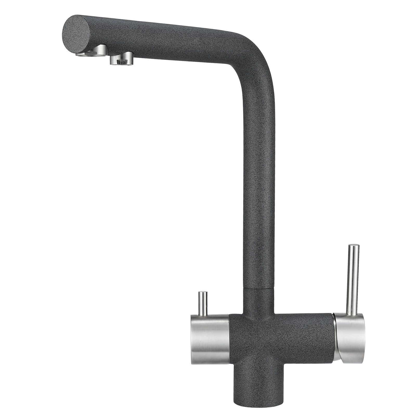Смеситель для кухонной мойкиЦветовая гамма: Алюминиум, Классик, Антик, Песок, Пирит, Базальт, Арктик, Эспрессо, Графит, Черный, ШварцГибкая подводка (3 шт.); набор для крепления; прокладки уплотнительные (2 шт.); аэраторГарантийный срок от производителя - 5 лет