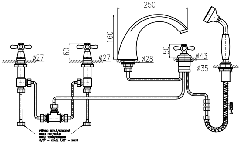 Смеситель на борт ванны Rav Slezak Morava retro MK169.5P хром