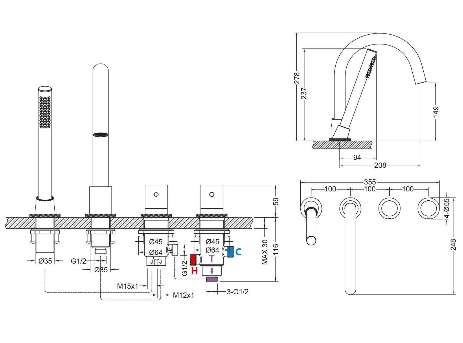 Смеситель Timo Saona 2330 предназначен для установки на борт ванны. Врезной смеситель придаст ванной комнате оригинальности, благодаря тому, что шланг ручной лейки и все соединения скрыты. Использовать такой смеситель очень удобно, термостатический картридж поддерживает стабильную температуру воды, обеспечивая максимально комфортные условия для принятия водных процедур. Переключение режимов потока воды и регулировка напора осуществляется плавным поворотом керамического дивертора. Поскольку часть конструкции является скрытой, рекомендуем позаботиться о том, чтобы к ней был доступ. Сложностей монтажа не возникает при установке смесителя опытным сантехником. Внимательно изучите инструкцию по монтажу и эксплуатации.