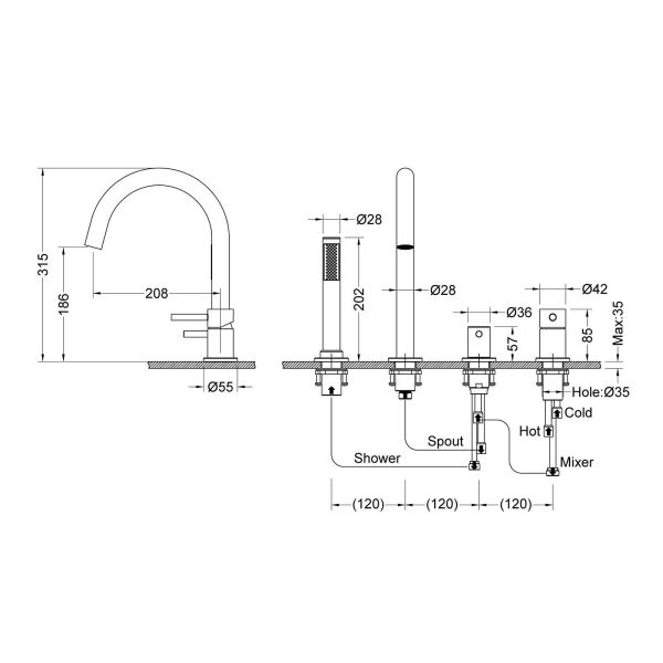 Смеситель на борт ванны Timo Saona чёрный 2320/03Y