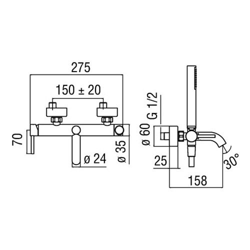 - Длина излива:158