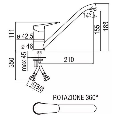 • Поворотный излив на 360°