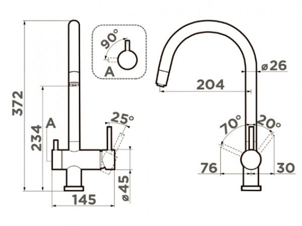 • Высота смесителя: