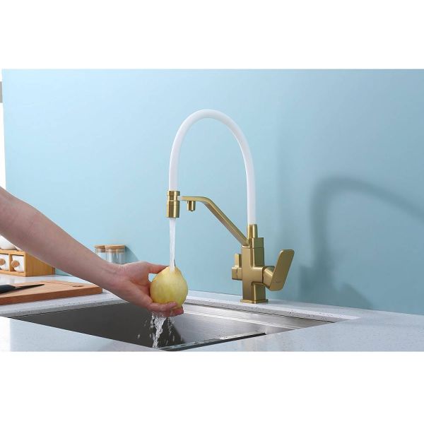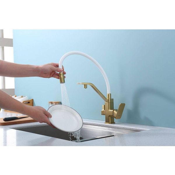 Смеситель Raglo R85.62.03 для кухни с подключением фильтра золотой сатин