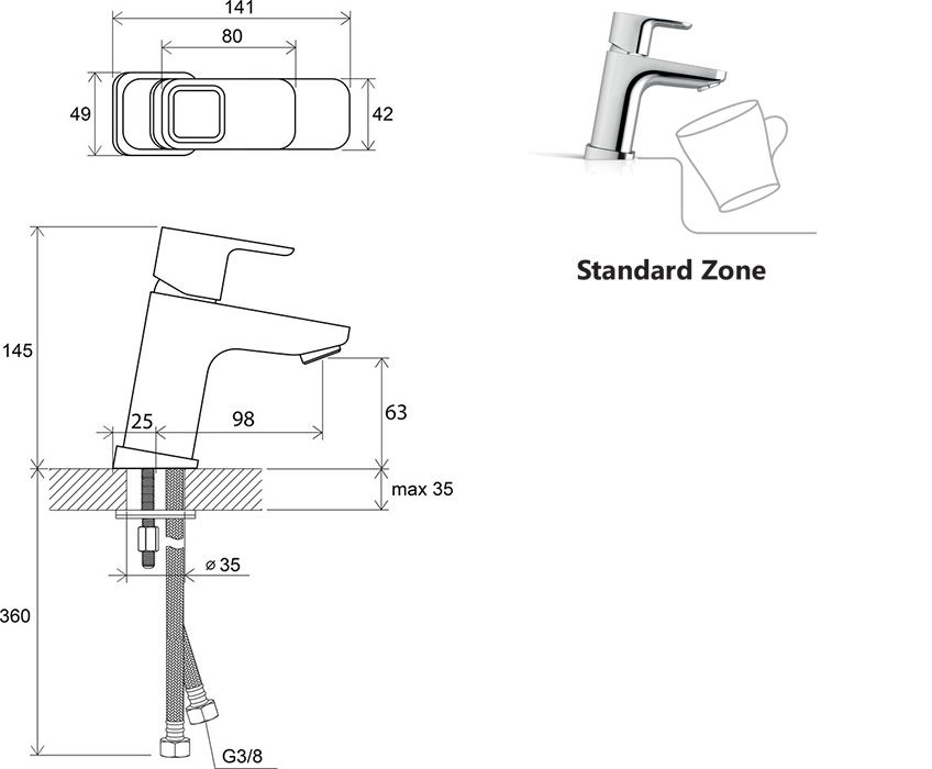 • высота смесителя: 140 мм - стандартный