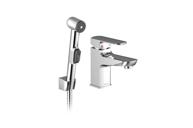 BM 011.00 Смеситель для умывальника с гигиеническим душем и настенным держателем. Идеален для туалетной комнаты, в которой не помещается полноценное биде.