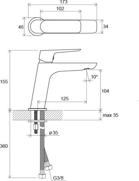 • соединительные шланги: гибкий 450 мм, диаметр G3/8