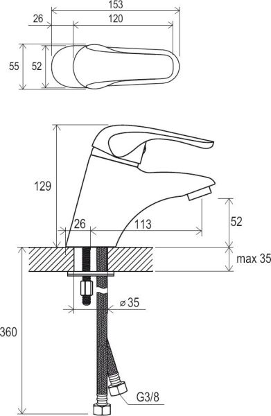 • соединительные шланги: гибкий 350 мм, диаметр G3/8