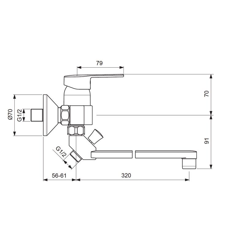 Длина излива, мм: 320