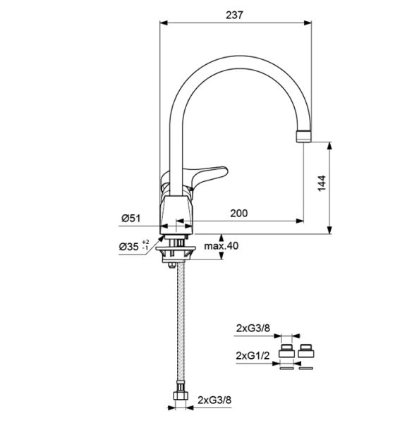 NEXT Смеситель для кухонной мойки, рукоятка сбоку.