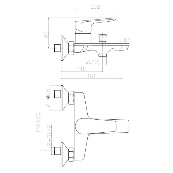 Смеситель для ванны однорычажный. С изливом.* Материал: латунь
