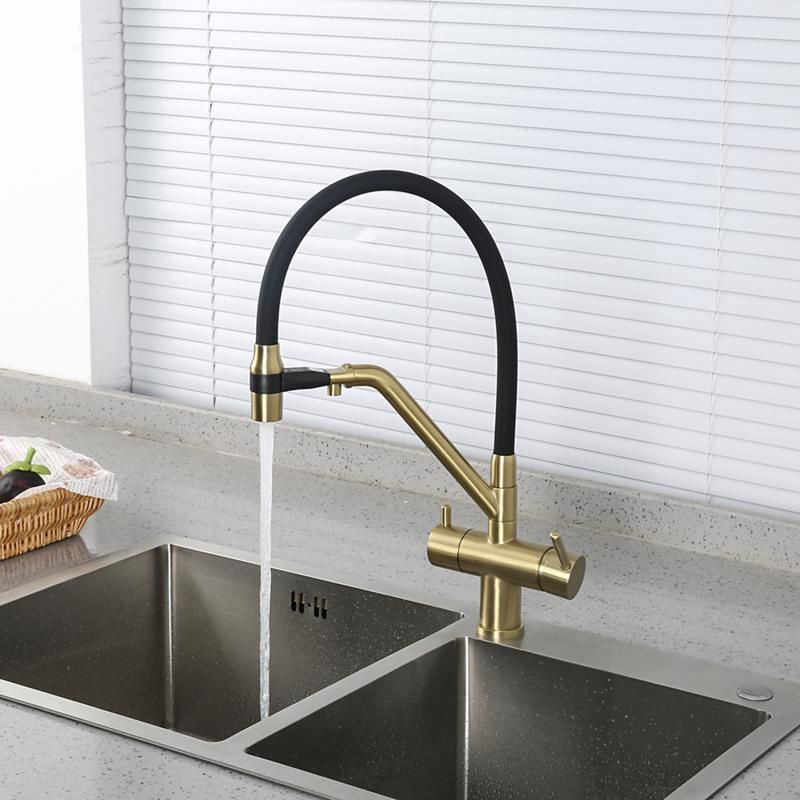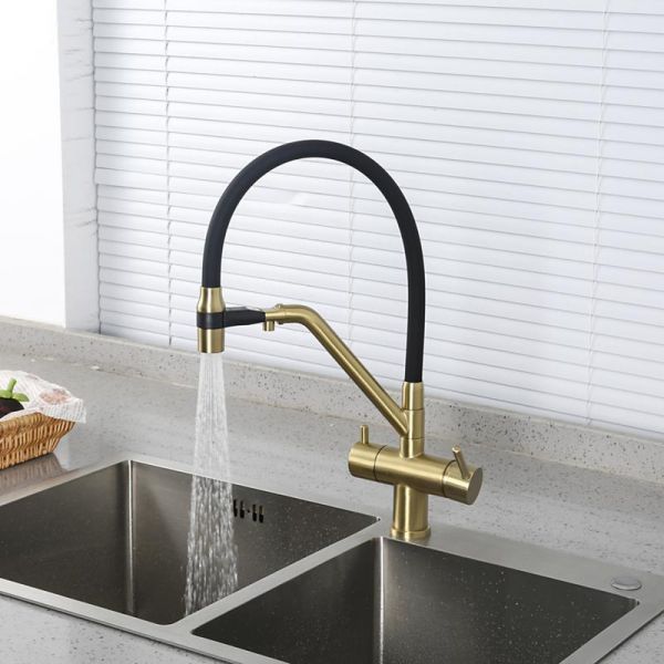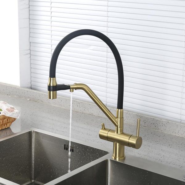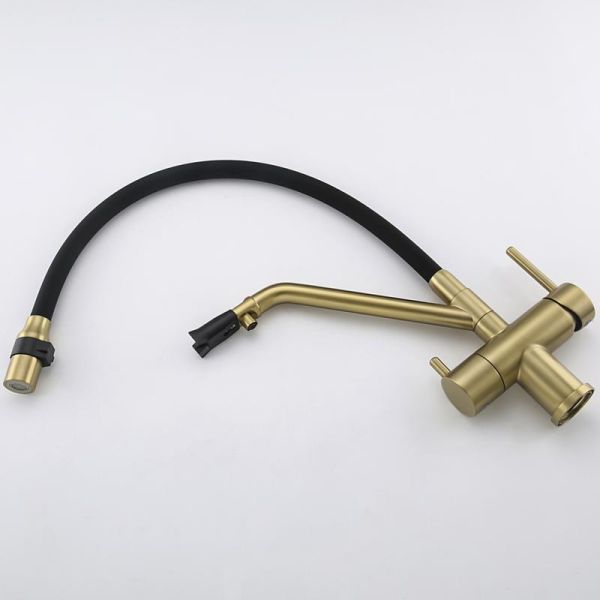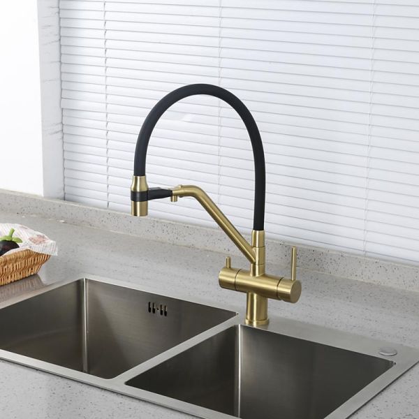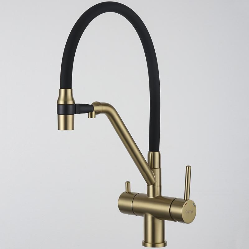 Смесители для кухни Gappo G4398-83 под фильтр с гибким изливом золото/чёрный