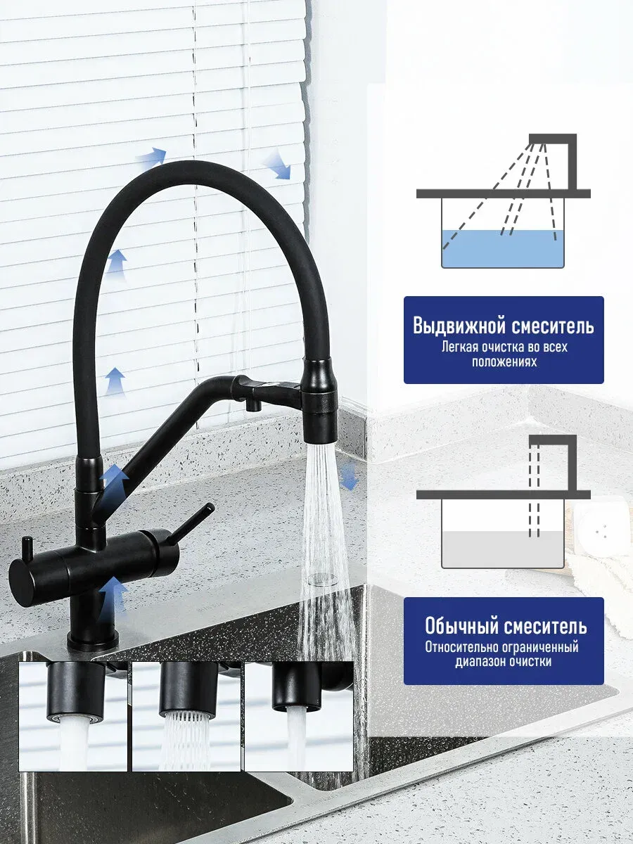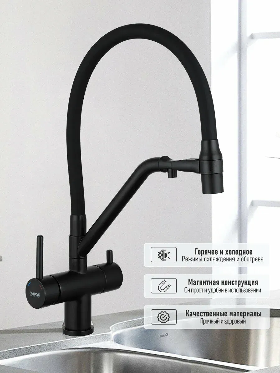 Смесители для кухни Gappo G4398-86 под фильтр с гибким изливом чёрный купить