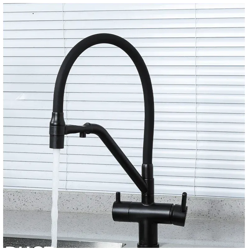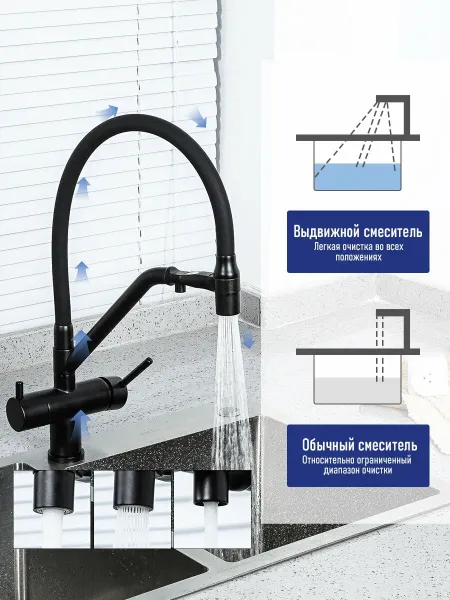 Смесители для кухни Gappo G4398-86 под фильтр с гибким изливом чёрный