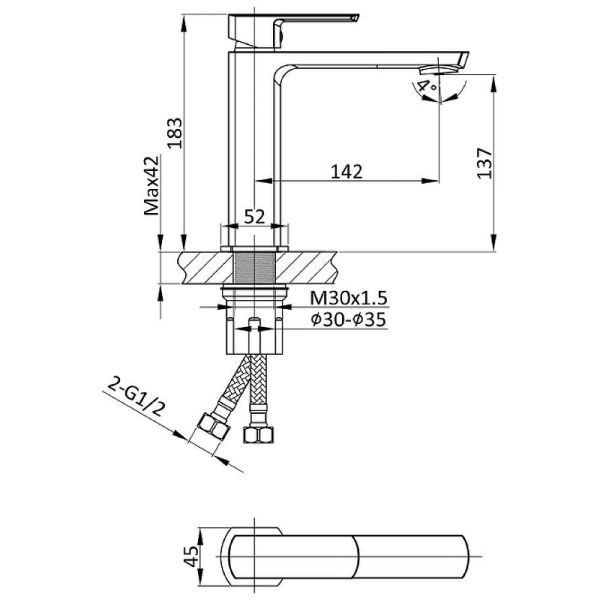 • Высота смесителя: