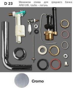 SIMAS D23cr (cr - хром) Механизм слива на средней трубе, с рычагом для фронтальной установки на бачок SIMAS AR812b, труба - латунь. Производитель Италия. Цвет хром.