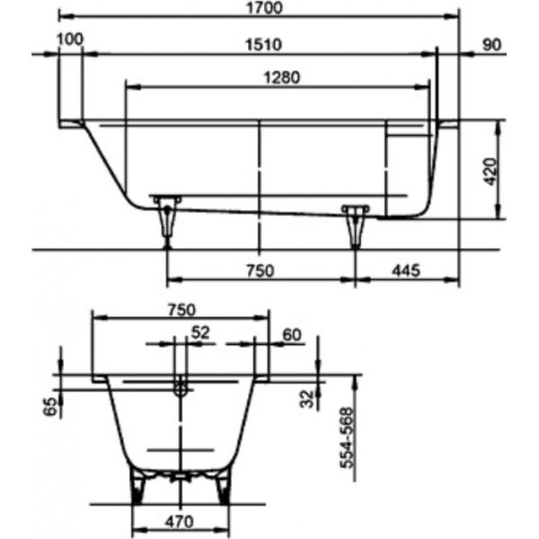 Прямоугольная стальная ванна Kaldewei Puro 170x75 с толщиной стенок 3.5 мм.