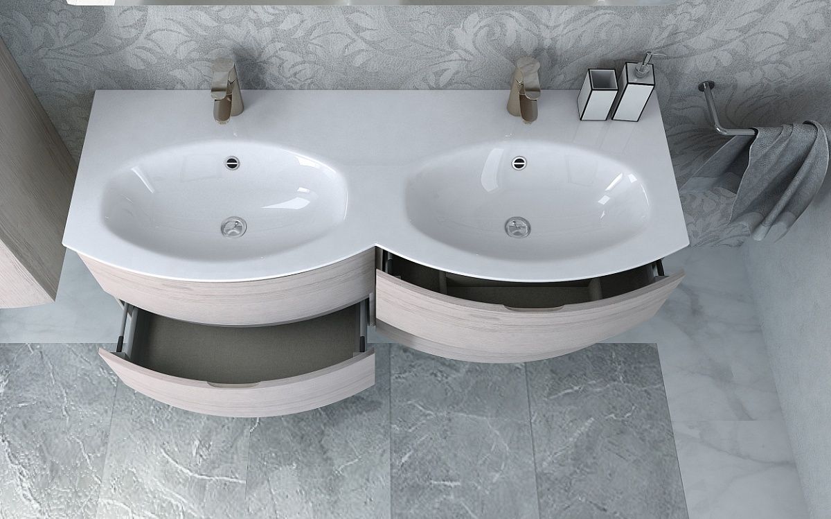 Стеклянная раковина с двумя чашами138x52смExtra-light