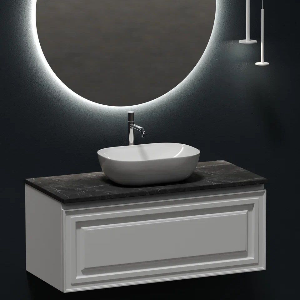 Столешница для ванной комнаты из керамогранита, для установки на подвесную тумбу. C готовым отверстием для установки накладной раковины. С заранее просверленным отверстием под смеситель.