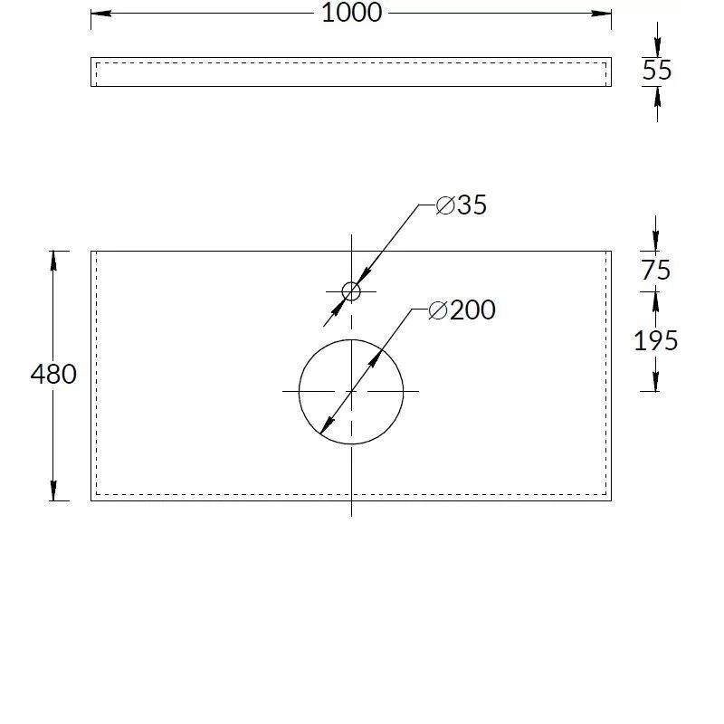 • Размеры: (Ш:Г:В): 1000 х 480 х 55 мм