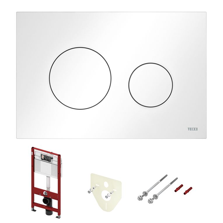 Застенный модуль TECEbase полностью готов к монтажу и установке повесного унитаза. Все необходимое дополнительное оборудование входит в комплект TECEbase kit. Модуль комплектуется бачком для воды объемом 10 литров. Конструкция сливного клапана позволяет регулировать большой объем слива - от 4,5 до 9 литров. Объем малого смыва составляет 3 литра. Материал бачка и технология его изготовления обеспечивает ударопрочность и стойкость к низким температурам. Доступ к содержимому бачка производится через отверстие для панели смыва, при этом все элементы внутренней конструкции легко извлекаются и обслуживаются. Использование подвесного унитаза вместо стандартного напольного экономит пространство в туалетной комнате и значительно упрощает процесс уборки помешения. Модуль TECEbase выдерживает нагрузку до 400 кг, что обусловлено конструкцией, надежностью используемых материалов и постоянным контролем качества. КОМПЛЕКТАЦИЯ Застенный модуль TECEbase. Панель смыва (кнопка смыва) TECEloop, цвет — белый. Крепеж для монтажа модуля к стене. Звукоизолирующая прокладка для унитаза. Размер застенного модуля: 112 x 50 x 16
