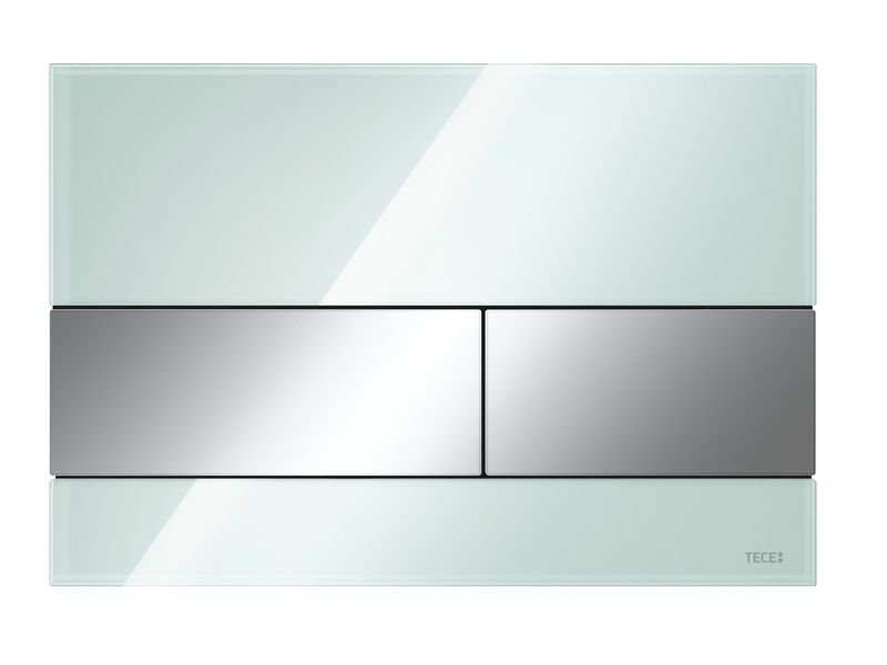 Панель смыва для смывных бачков TECE, фронтальная или верхняя установка. Плоская стеклянная панель смыва с двумя установленными на пружинах клавишами привода кулисного типа. Подходит для монтажа на уровне стены вместе с монтажной рамкой унитаза для монтажа на уровне стены (например, арт. 9240649). Совместима с контейнером для гигиенических таблеток. Размеры (Ш х В х Г): 220 x 150 x 11 мм Монтажная рамка для установки панели смыва на уровне стены в комплектацию не входит; приобретается дополнительно!