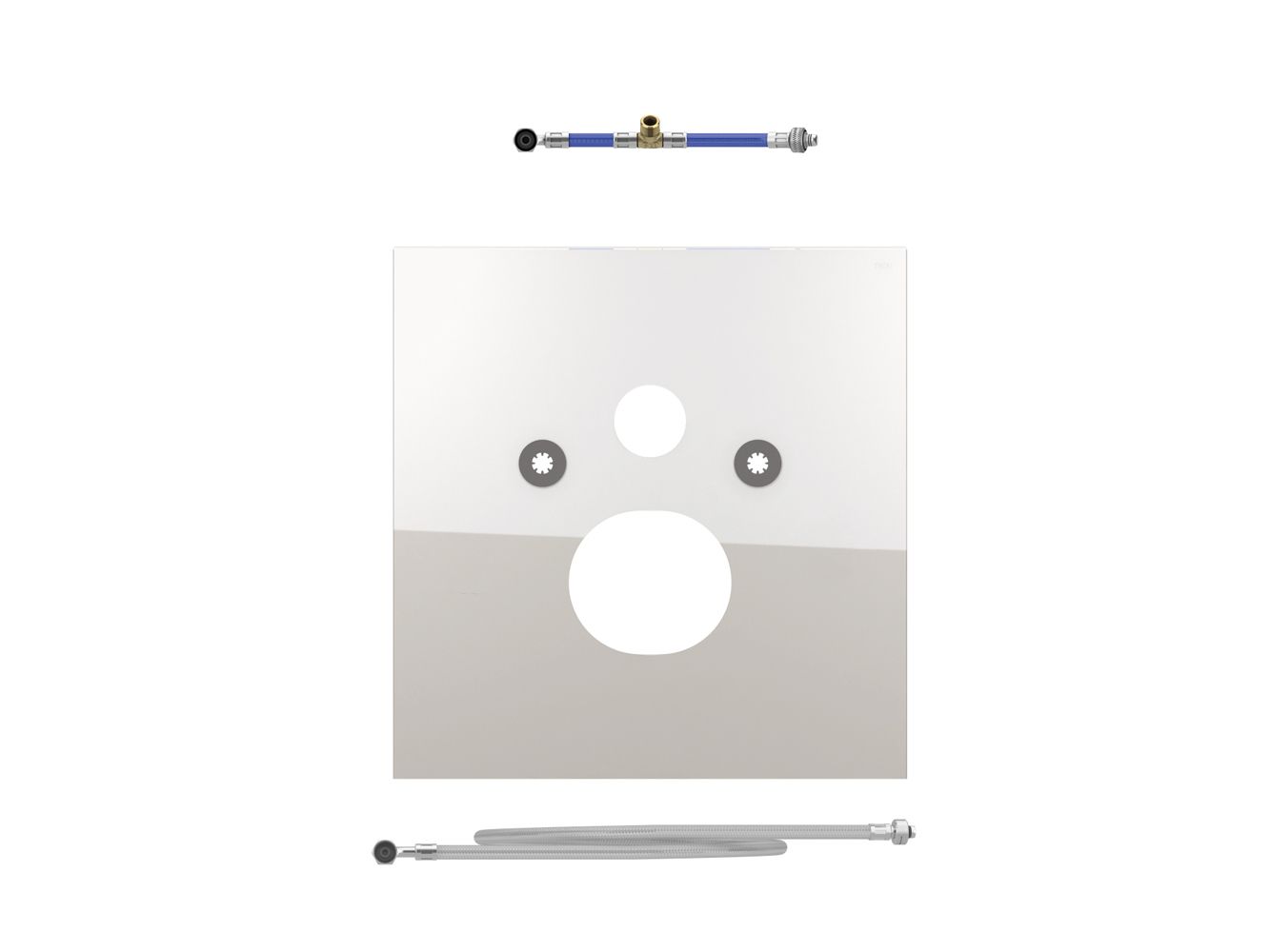 Нижняя стеклянная панель для установки унитазов-биде Duravit SensoWash C, а также Slim или Villeroy & Boch Viclean L, в комплекте со звукоизолирующей прокладкой, отводом для подключения воды внутри бачка и шлангом для подводки воды. Размеры (В x Ш x Г): 446 x 430 x 16 мм