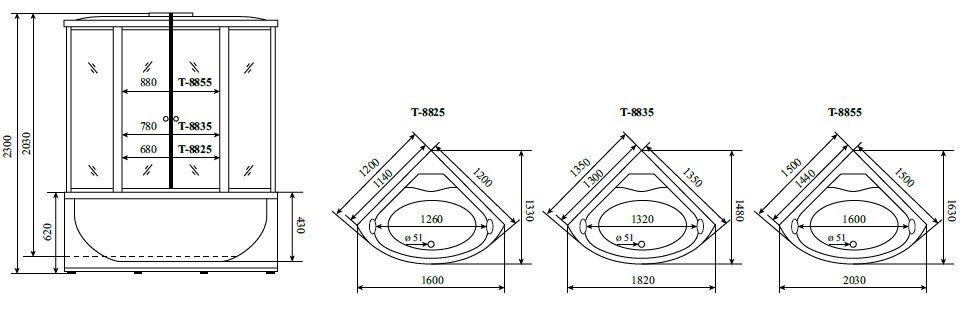 Timo Comfort Т-8825 Fabric Glass душевая кабина (120*120*220)