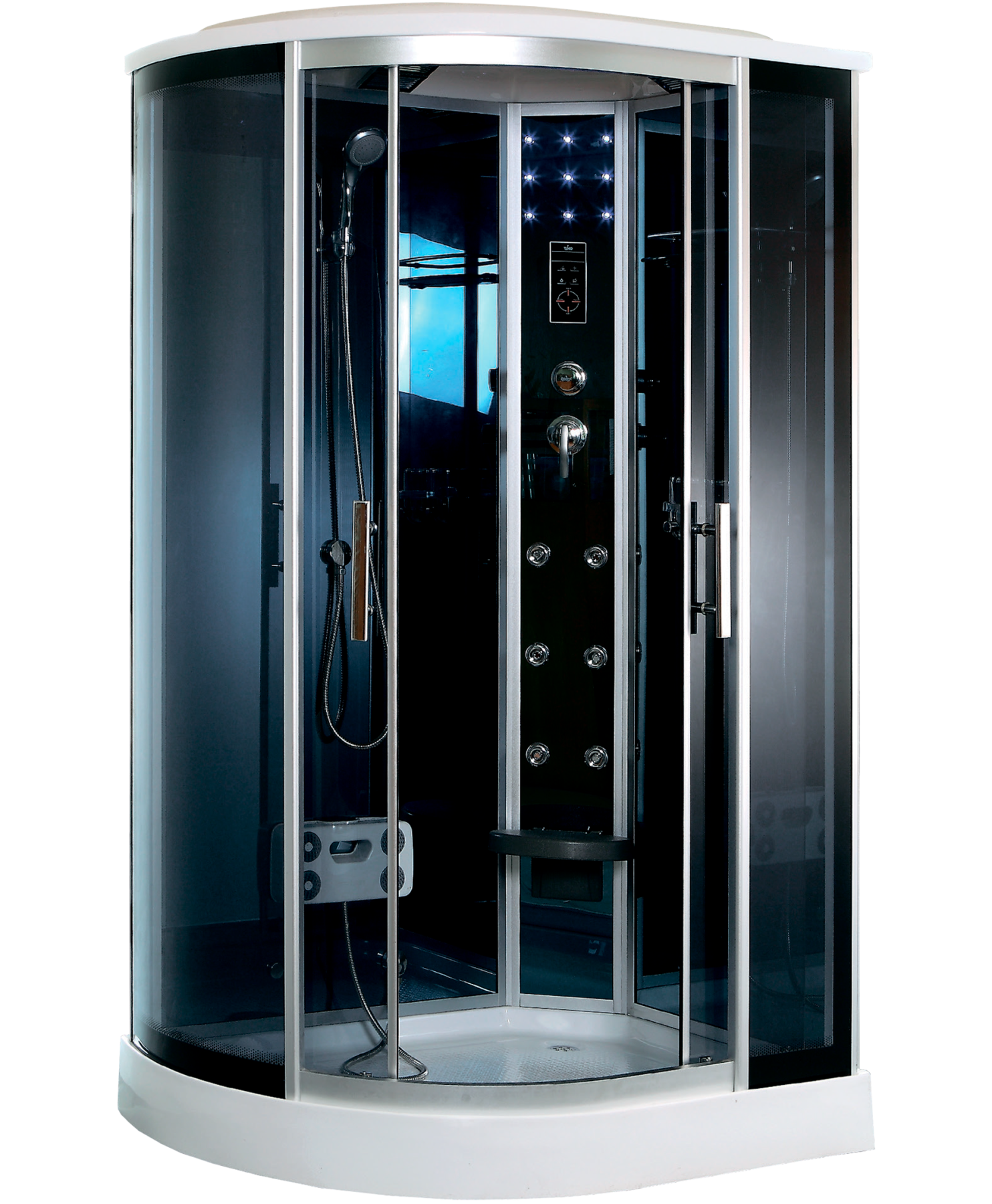 Форма прямоугольная-асимметричная, Управление сенсорное, Зона гидромассажа гидромассаж спины, гидромассаж ног