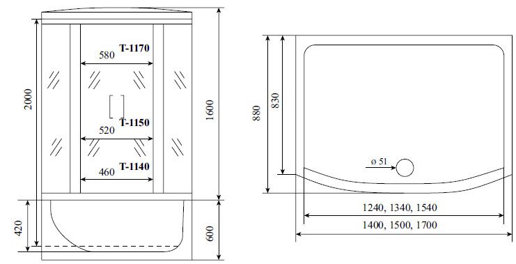 Timo Standart T-1150 душевая кабина (150*88*220)