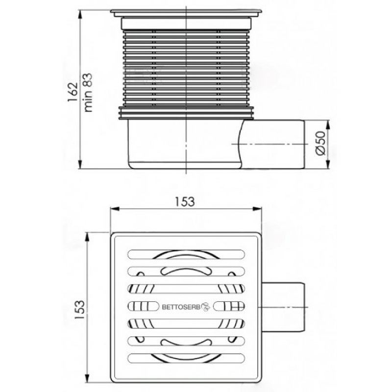 Трап с мульти-сифоном BETTOSERB 14702509 Superior Quadro 15х15 горизонтальный выпуск